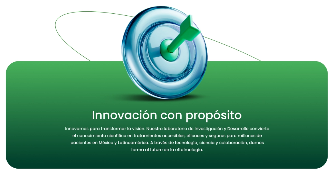 Creamos el futuro de la visión. En Laboratorios Grin®, la ciencia es el motor que nos permite imaginar un futuro con mejor salud visual. Nuestro compromiso se refleja en cada molécula, cada formulación, y cada avance clínico a través del desarrollo de soluciones oftalmológicas seguras, eficaces y accesibles.